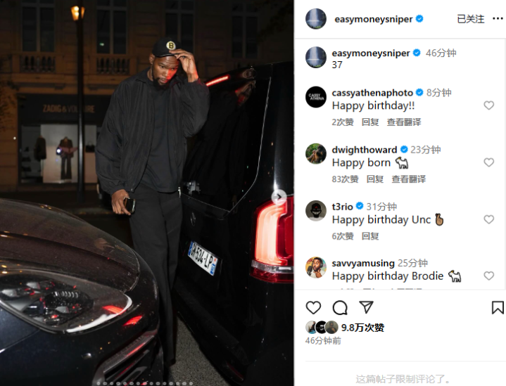 今天刚好是杜兰特的37岁生日夜,火箭熊送给杜兰特一个拿着死神镰刀的火箭熊玩偶,以此祝贺杜兰特生日快乐;媒体日结束后,杜兰特在Ins上晒出多张照片为自己庆生,晒出自己独有气质的生活照,晒出与阿门申京的合影,还晒出昔日与威少、科比同框的旧照,配文写道:37岁了。