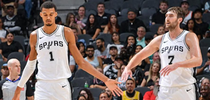 双方首发阵容,热火队鲍威尔、希罗因伤缺阵,排出了阿德巴约、维金斯、米切尔、韦尔、拉松的阵容;马刺队福克斯、索汉缺阵,排出了文班亚马、巴恩斯瓦塞尔、卡斯尔、尚帕涅的组合!