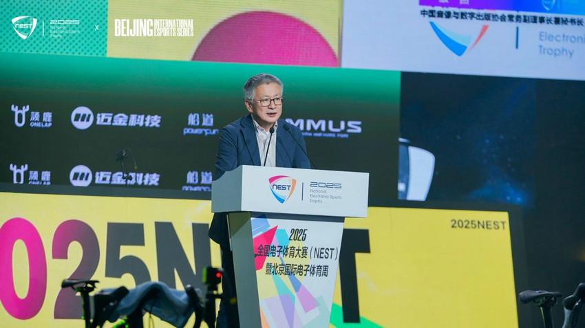 北京市体育局党组成员、副局长石风华、中国音像与数字出版协会常务副理事长兼秘书长敖然、北京市体育总会秘书长姚强、北京经济技术开发区宣传文化部副部长朱天博、北京经济技术开发区社会事业局副局长刘国建共同按下启动按钮,标志着2025全国电子体育大赛(NEST)暨北京国际电子体育周正式拉开帷幕。